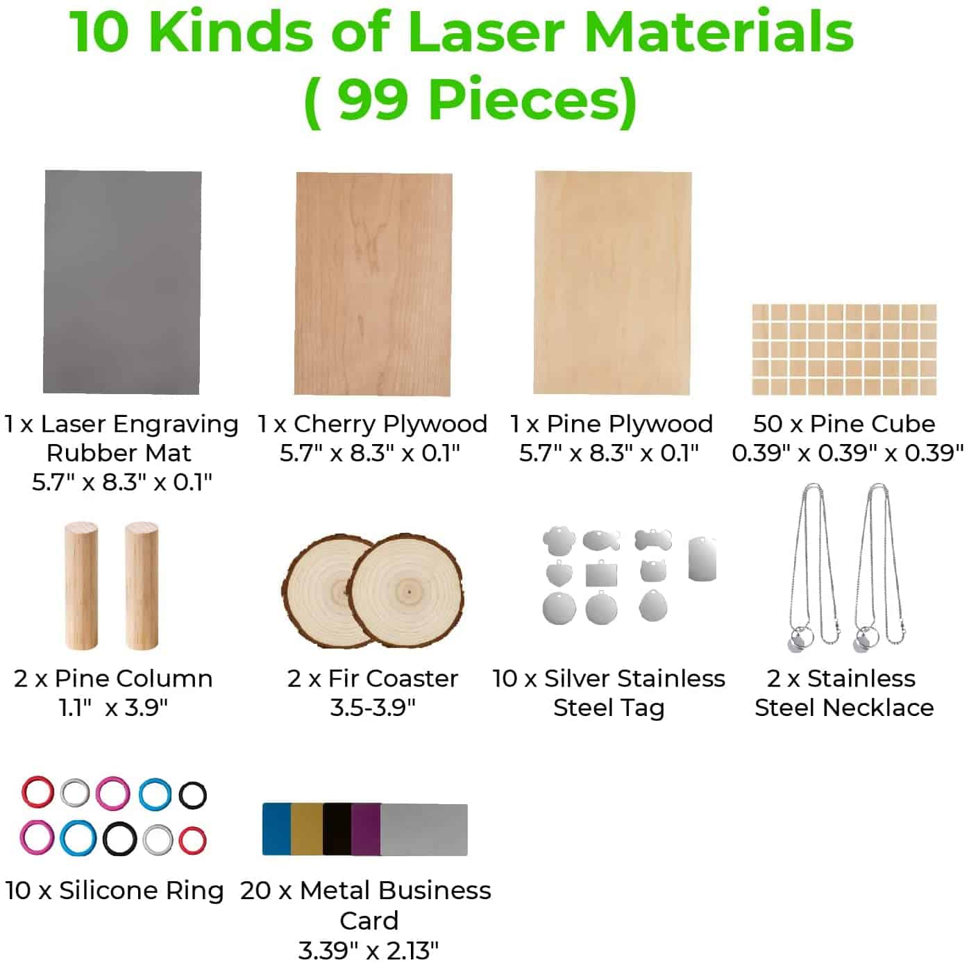 A must-have material pack with 10 popular materials, perfect for getting started with laser devices such as Laserbox and xTool D1.