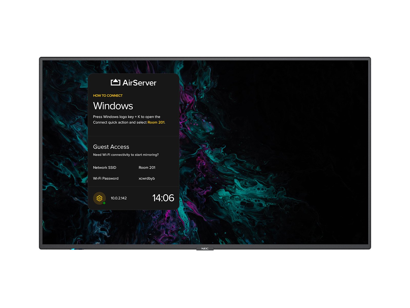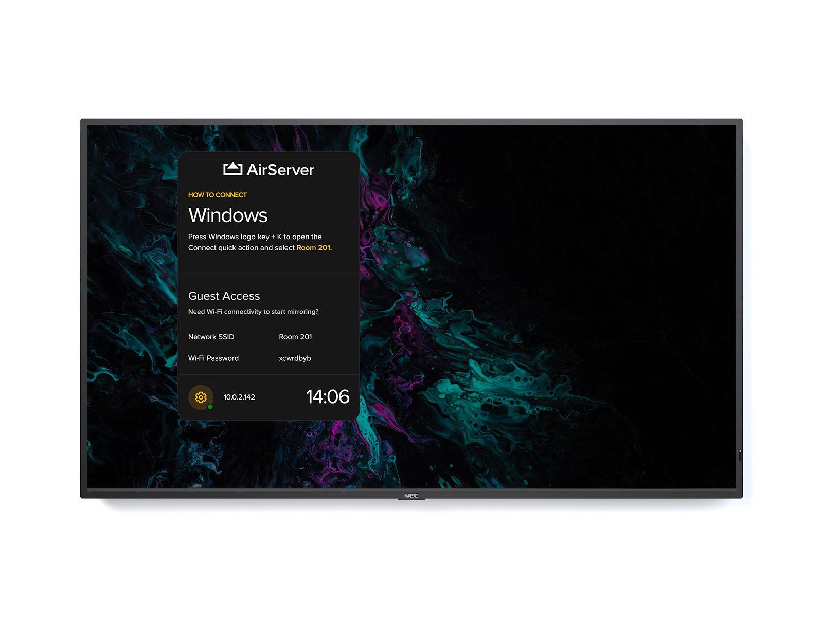 Future-proof and upgradable, AirServer software is powered by a pre-installed modular SoC Raspberry Pi module which transforms the Sharp/NEC M and ME series large format display into a universal screen mirroring receiver. With AirServer enabled on the Sharp/NEC large format display, users can wirelessly mirror the content on their personal screen (Mac or PC, iPhone, iPad, Android or Chromebook) to the meeting room display, instantly turning the room into a collaborative space.