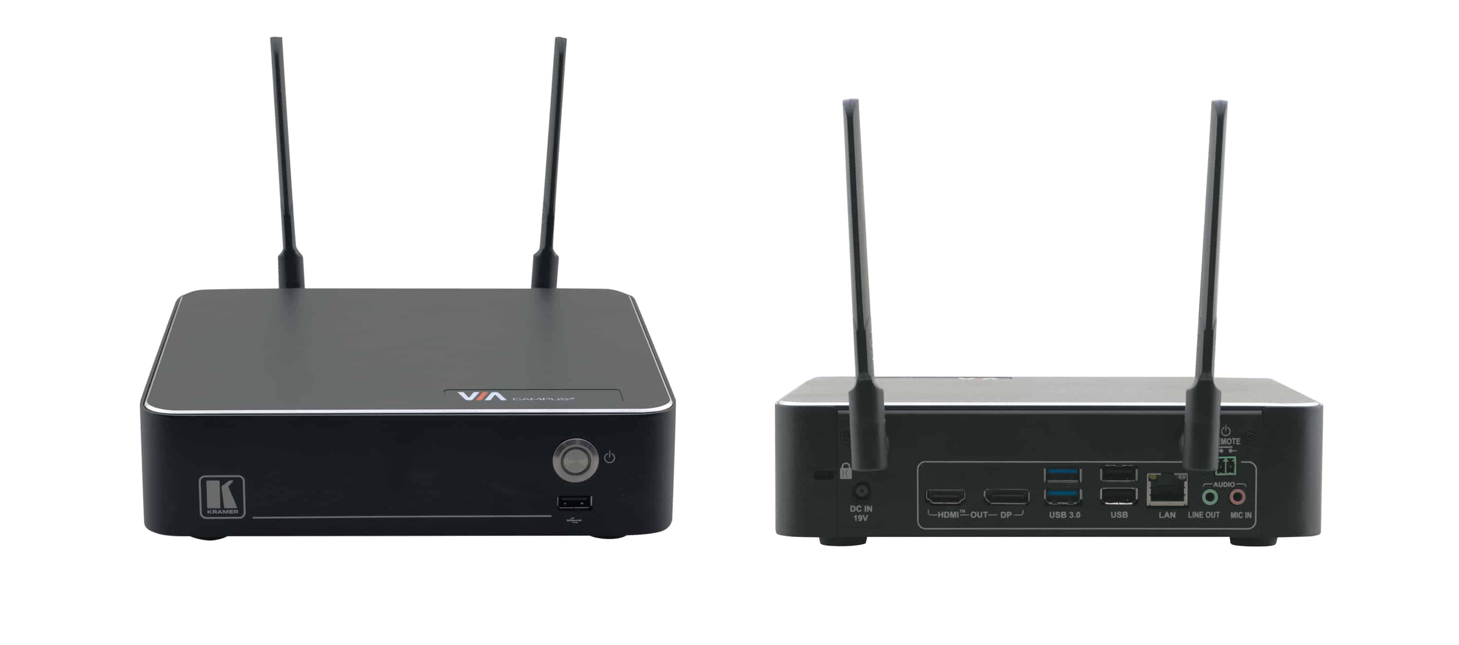 - Easy and Effective Wireless Connectivity — Built–in Wi–Fi gives you two setup options for enabling meeting participants to wirelessly join the meeting. After setting a wired connection from your VIA device to your local corporate LAN you can do one of the following: use the built–in VIA Wi–Fi to create a guest network to which participants can connect or use the built–in VIA Wi–Fi as a Miracast receiver.